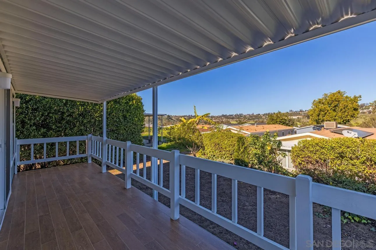 Remodeled and Move in Ready, 3 BR / 2BA, Paid For Solar, and Views! The Cliffs, 55+ Senior Mobile Home Park, is just minutes from Admiral Baker Golf Course & Mission Trails Regional This 2003 manufactured home exterior features paid for solar panels, shingle roof, hardi-panel fiber cement siding, new hot water heater, and a 8×10 tuff shed. Termite fumigation is still under warranty. The sound of the breeze whispering through the tall pine tree is relaxing, a wide walkway and flowering plants welcome you to the entrance and the newly tiled covered deck. Enjoy north facing views and city lights from the yard, deck, or living room. Interior features a vaulted ceiling, ample windows, new dual glazed vinyl sliding glass door, new luxury vinyl plank flooring throughout, fresh paint, and new whole house air conditioner. The kitchen has plenty of storage cabinets, including pantry, new stainless-steel appliances, and gleaming quartz counters. A full-size washer and dryer are in the separate laundry. Bedrooms are of ample size with primary bedroom having a walk-in closet, soaking tub and shower combo. Over 1,120 square feet conveniently located next to the clubhouse, library, heated pool and hot tub.