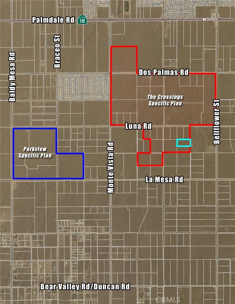 5 ac residential land in the Crossings Specific Plan. Located in West Victorville, this area is primed as the next major residential development hub. 80 ac at Luna and Monte Vista has a vested TTM for 269 lots. KB Home recently resubmitted a 135 lot TTM on 40 ac at Luna & Monte Vista. Two massive Specific Plans encompass this area, The Crossings, comprised of plans for 2,656 lots on 449 ac, and Parkview Specific Plan, comprised of plans for 715 lots on 177 ac. This 5 ac is in a portion of the Crossings Specific Plan slated for 5 units/ac (see map). This is a great opportunity to acquire in this area before it eventually is built out.