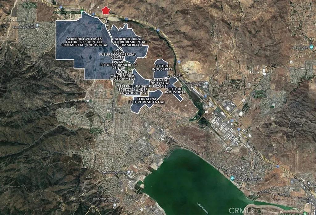 We're pleased to present the opportunity to purchase +/- 30.88 gross acres of land located at the Lake Street & I-15 interchange in the City of Lake Elsinore. The site is a part of the larger Alberhill Specific Plan which encompasses thousands of residential units and millions of square feet of commercial & industrial space, primarily along Lake Street. The entirety of the site initially consisted of 270 acres, of which roughly 240 acres has already been sold to the RCA, leaving approximately 30 gross acres for development. Of the +/- 30 acres, weve estimated approximately 6.6 acres is usable based on the conceptual pad exhibit on the following page in which avoids blasting and balances from a grading standpoint. The grade also maxes out at 5% to accommodate trucks based on the various proposed uses. The +/- 6.6 net acres is split up between a larger 4.7-acre pad and smaller 1.9-acre pad. Ownership is open to selling all together or separate. Please reach out with any questions or interest in this opportunity.