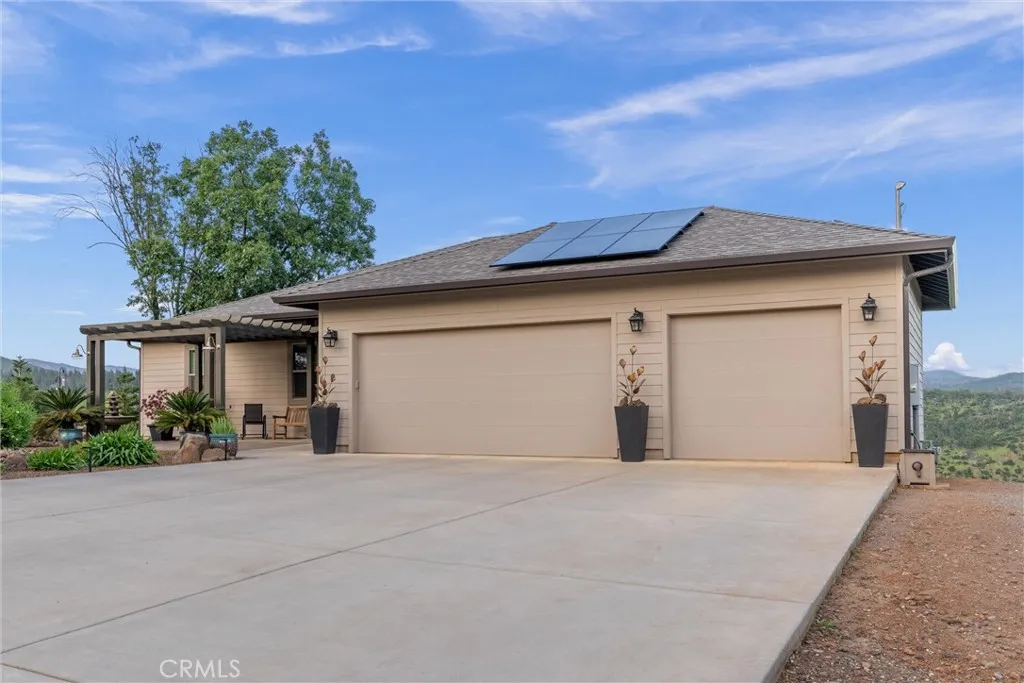 For the discerning buyer seeking something exceptional, here is a rare gem boasting an unparalleled view. Crafted to maximize the breathtaking vistas and sounds of the Feather River canyon, complete with its cascading river view and connection to Lake Oroville, this residence offers a singular experience. Upon arrival, you're greeted by front landscaping in which every aspect is meticulously curated to maintain a harmonious theme. The landscaped lawns benefit from an underground watering system ensuring complete coverage. Inside the open living space you'll enjoy a floor to ceiling fireplace complimenting the floor to ceiling view. The spacious kitchen features a sizable island with stone counters, shaker cabinets, subway tile backsplash, and a large pantry. The expansive 8x12 sliding glass door integrates indoor and outdoor living, leading to a large deck framing the panoramic views. With 1,785 square feet of living space, this home is currently set up as a 2 bedroom plus office, but could easily be used as a 3 bedroom residence. The property also has an insulated 3-car garage with extra-deep bay and 220v wiring for a backup generator, additional side parking, and Owned Solar. Situated in a prime location, this home directly overlooks the West Branch of the Feather River, offering a tranquil ambiance year-round. The composite decks ensure lasting beauty, with multiple outdoor spaces, including a shaded lounge under the main deck, an outdoor shower with ambient solar lighting, a sitting area beneath a pergola, and an observation deck over the canyon. Indoors, luxury vinyl p