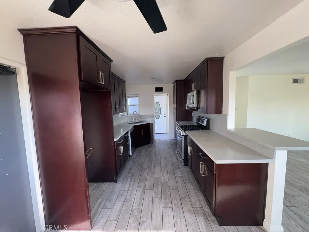 This home is near UCR and has quick easy access to multiple freeways. Nice kitchen features stainless steel appliances and quartz counters with barstool counter seating. Tile and vinyl plank floors throughout the home. All neutral and modern color palette throughout. Dual pane vinyl windows and ceiling fans will help keep utility costs down. Covered patio and BBQ island in the back yard are great for entertaining.