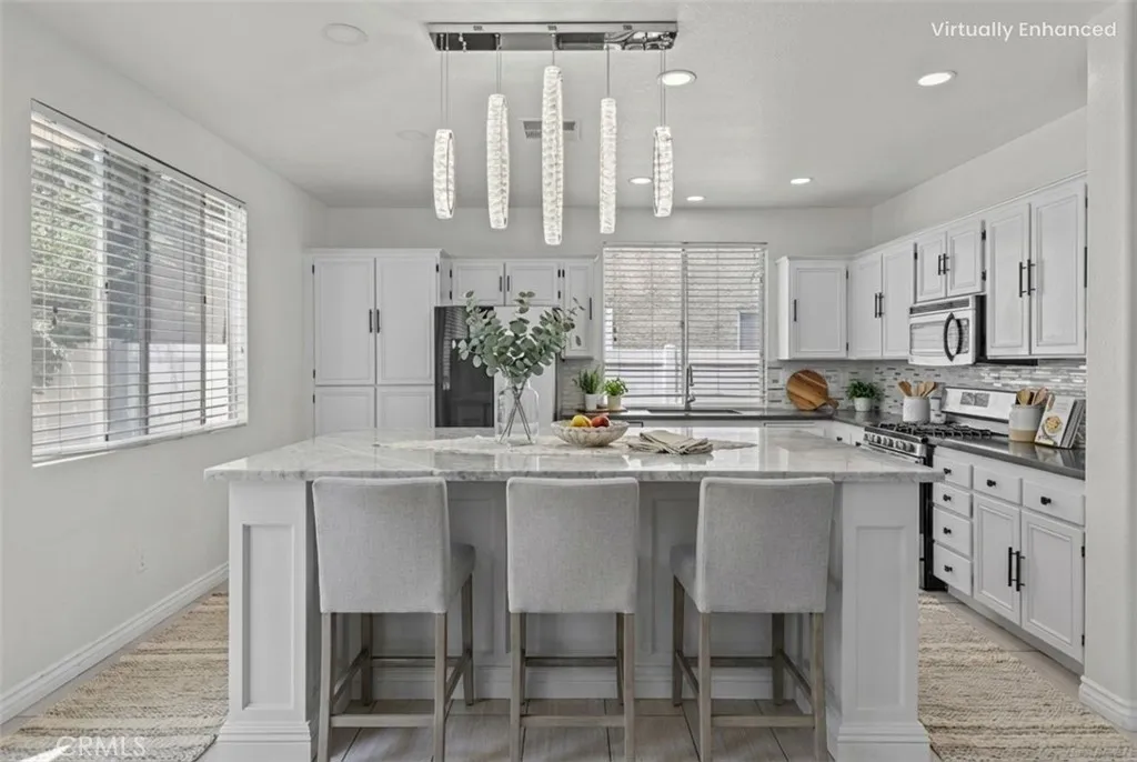 4 Beds | 3 Baths | Large Bonus Room (Optional 5th Bedroom) | 2,794 Sq Ft | 4-Car Garage | Solar | Dedicated Laundry Room | Remodeled Front Yard | Electric Fireplace | Low HOA | High Ceilings Welcome to Horsethief Canyon Ranch. This 4-bedroom, 3-bath home with a large bonus room provides 2,794 sq ft of well-designed living space on a 6,969 sq ft lot. The living area features soaring ceilings, a clerestory window, and a chandelier that enhances the natural light. The functional layout includes a bedroom and bathroom on the main level. The remodeled bathroom showcases a floating vanity, LED mirror, marble accents, and a clean, modern walk-in shower. The redesigned front yard showcases low-maintenance turf and modern design accents, while the backyard offers the flexibility to add a shade sail for enhanced outdoor comfort. The formal dining room highlights an upgraded split-face tile fireplace with a color-changing insert. The open kitchen includes marble countertops, a cabinet-style island, and generous space for everyday use. Upstairs, the primary suite includes a walk-in closet, a chandelier, and a full bath with a spacious double-sink vanity. The community includes pools, a gym, tennis courts, sports fields, parks, and scenic hiking trails.