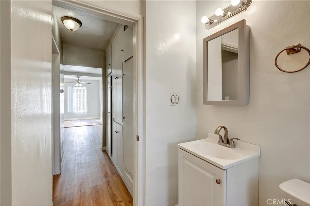 Remolded Extra-spacious one-bedroom apartment located on a quiet cul-de-sac. This downstair inviting home features new wood flooring, a beautifully remodeled bathroom, and an upgraded kitchen with a dining area. Enjoy a double closet with additional built-in storage cabinets for added convenience. Additional highlights include onsite laundry, one assigned parking space, and an excellent floor plan. water and trash included in rent, tenant responsible for utilities. Subject to credit check and income verification. Move-in ready come make this your new home