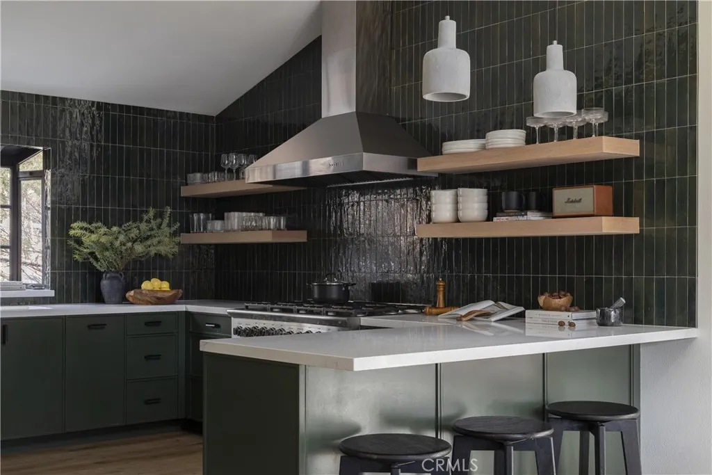 The cabin youve been waiting for, welcome to Soulshine. Tucked into Big Bears highly sought after Fox Farm area, this fully renovated mountain retreat showcases high-end design, quality finishes, and timeless cabin appeal. Designed for year-round enjoyment, the home offers an ideal balance of comfort, style, and location in one of Big Bears most coveted areas. Inside, the home feels warm and inviting from the moment you enter. The main living space features a light-filled living room with vaulted wood ceilings and a stone fireplace, creating a cozy place to relax after a day on the slopes or at the lake. Large windows bring in natural light, connect the space to the surrounding trees, and offer views of the ski slopes in the distance, making the living room the heart of the home. The kitchen is fully equipped with high-end finishes, a statement backsplash, moody cabinetry, and floating wood shelving. The adjacent dining area is ideal for entertaining and everyday living. The main level offers three bedrooms, including a primary suite with a soaking tub and two additional guest bedrooms with a full bath. Upstairs is an additional sleeping area with bunk beds, perfect for kids or guests. Outdoor living is a true highlight. Step outside to an open deck ideal for entertaining, grilling, or stargazing, and enjoy the outdoor jacuzzi in the backyard. The fully fenced yard provides space for kids, pets, and relaxed outdoor living. A large concrete driveway provides parking for up to six cars and a two-car garage, currently used as a game room. The property also features additional