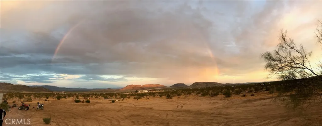 Price-adjusted and off-road vehicles and furniture are also available; call me for the details. Seize this incredible opportunity to create your ideal desert sanctuary near Giant Rock, the Johnson Valley HOV area, and Joshua Tree National Park. This home has a main bedroom and two additional bunk bedrooms for flexibility and privacy. The home boasts breathtaking 360-degree views, inviting you to immerse yourself in peaceful desert surroundings. The large 5-acre parcel has room for the largest of dreams. Smartly designed vacation rentals are in the area, and due to its location, year-round activities are common. A stackable washer and dryer, an outdoor structure with multiple uses, many fence posts, and a large storage container are included. Imagine evenings under a sky full of stars, where you feel you can touch. The daily sunrises and sunsets are works of art. It's no wonder artists and musicians find inspiration here. Leave city life behind for the tranquility and inspiration the high desert offers. Come and stay, come and play!