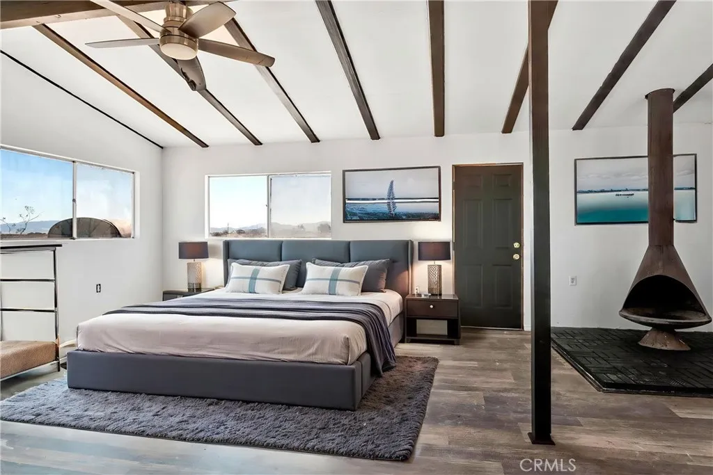 Joshua Tree back entrance location - Ultimate Wonder Valley private Rec Cabin with simple luxury in the High Desert on five expansive acres. Professionally renovated - this spectacular tiny home features an airy living and dining space with beamed ceiling with custom framed doors and windows, Morso WB fireplace and a generous living area.Brand new double lined stucco on the outside and fully insulated detailedcraftsman finished work on the inside. NEW ROOF just installed and 20 foot beamed ceiling at the peak. Upgraded Electric Panel. The Power is on to this house and previously had hauled water. Bathroomand Kitchen framed will need to be finalized. Area is booming with Artists, New Restaurants, and Hip People of all ages. Wonder Valley is less than 15 minutes from the entrance to Joshua Tree National Park! As you approach the property, 360 degree panoramic views surround you, stretching from JTNP to the south to Mojave Trails National Monument to the North. The charming facade with its stonework accents welcomes you to explore furtherw- 5 private acres, you have plenty of room to expand your dreams. There are fewer and fewer of these unique Rec Cabins that havent be bought up by big land companies - don't miss out on your chance to own your personalized hi-desert hideaway. Move in ready. Pictures say it all. Offered $79,900 Firm CASH. (Property is virtually staged)