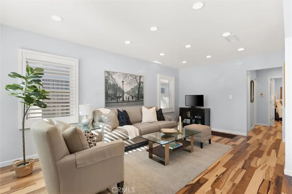 Extensively remodeled with high-end finishes and a detached back house, this Reynier Village home offers turnkey living in a location central to Los Angeles. Start 2026 off in your new home, where intentional design, quality craftsmanship, and prime Westside living come together. This beautifully updated property features a thoughtfully remodeled main residence plus a detached bonus unit, offering flexibility rarely found in this location. The 2-bedroom, 1-bath main house has undergone an extensive, comprehensive renovation, with many components rebuilt or replaced to create a cohesive, modern living environment. The open-concept layout is filled with natural light and showcases Brazilian hardwood floors, triple-pane windows, and plantation shutters throughout. The spacious living and dining areas flow seamlessly into a fully remodeled kitchen featuring quartz countertops, custom white cabinetry with open shelving, stainless steel appliances, and a new refrigerator. Just beyond the kitchen, a hallway nook provides an ideal space for a home office, pantry storage, or creative workspace. Two bright bedrooms with generous closets share a spa-inspired bathroom, fully remodeled with custom multi-head shower fixtures. Additional upgrades include a new water heater, a new central AC unit, and a new washer and dryer, all seamlessly integrated for everyday comfort. The scope and depth of the renovation reflect a meticulous approach, prioritizing quality construction, thoughtful design, and long-term functionality. The detached 1-bedroom, 1-bath back house adds exceptional versatilit