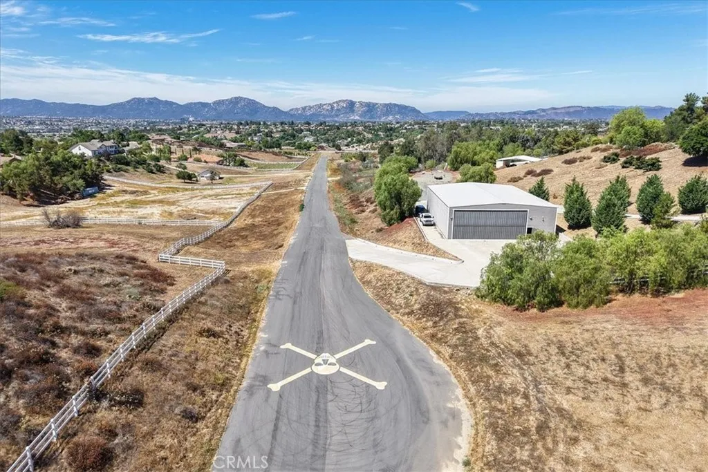 Fly-in convenience meets wine-country luxury with private airstrip* access and a 4,800 sq ft hangar. Perched on 7.36 acres of Temecula wine country, this single-story home offers convenience alongside luxurious living. Step inside through a gated entry to a grand foyer with soaring ceilings that opens to a great room featuring a floor-to-ceiling stone fireplace and vaulted wood-beam ceilings. The chefs kitchen boasts granite countertops, a center island, separate breakfast bar and top-of-the-line stainless steel appliances. Panoramic orchard and mountain views frame the formal dining area. Retreat to the master suite with vaulted ceilings, a private fireplace and dual French doors leading to the landscaped backyard oasis. Enjoy a sparkling pool and spa, dual-sink vanity, jetted jacuzzi tub, large walk-in shower and his-and-hers closets. Three additional bedrooms include two en-suite baths and one versatile room currently used as a home office with its own private entrance. Beyond the home, aviation enthusiasts will love the covered storage adjacent to the hangar and the large, flat event area perfect for RVs, car shows or gatherings. A full-size lighted pickleball court and ample covered storage complete the outdoor amenities. With dramatic 360-degree views, privacy and unparalleled access to a private runway, this rare Temecula property may never be matched. Schedule your private showing today and experience a lifestyle that combines luxury, recreation and aviation. You will NOT see a listing like this again *Airstrip/Runway is private to the Homeowner's Association. *Sell