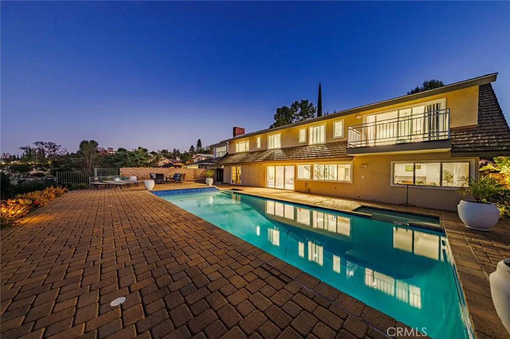 Perched above the sought-after Mulwood neighborhood of Calabasas, this contemporary home commands breathtaking panoramic views of the city and surrounding valleytruly a must-see. Thoughtfully designed with luxury and comfort in mind, every detail of this exceptional residence has been meticulously curated. The home features five spacious bedrooms and three beautifully remodeled bathrooms, enhanced by abundant natural light, recessed lighting, ample storage, and refined high-end finishes throughout. Wide-plank wood flooring paired with elegant marble surfaces flows seamlessly through the home, adding warmth and sophistication to its clean, modern aesthetic. At the heart of the home is a custom gourmet chefs kitchen, a true showpiece outfitted with premium Wolf appliances, a Sub-Zero refrigerator, waterfall-edge countertops with accent lighting, and dramatic accordion-style glass doors that create a seamless indoor-outdoor living experience. The primary suite offers an expansive private balcony with sweeping views, a generous walk-in closet, and a luxurious spa-inspired bathroom. Situated on a quiet street, the outdoor space is equally impressive, featuring a fully hardscaped yard with a sparkling pool and spa, ideal for entertaining or unwinding under the open sky. Additional highlights include owned solar panels that dramatically reduce utility costs, a brand-new HVAC system, no HOA fees, and placement within the highly sought-after Las Virgenes Unified School District, all just minutes from Calabasas premier shopping, dining, and entertainment. NO HOA | LAS VIRGENES SCHOOL