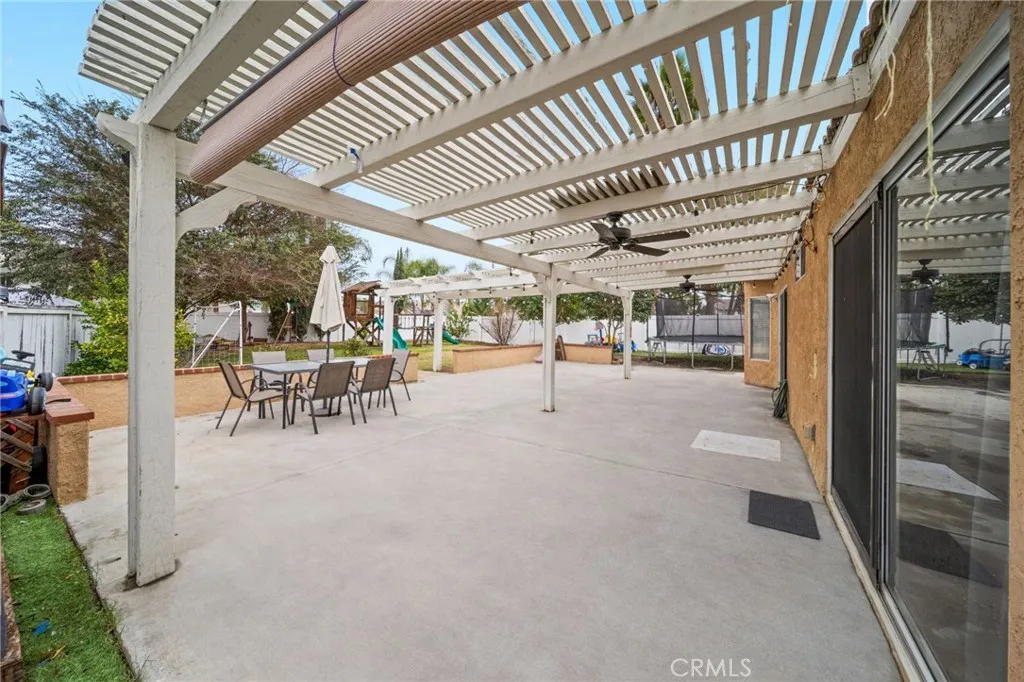 Welcome to this beautifully maintained home located in the desirable Menifee Lakes community. The light-filled living room features high ceilings, laminate wood flooring, and a cozy gas fireplace. The kitchen overlooks the spacious backyard, providing an ideal layout for everyday living and entertaining. The primary bedroom offers vaulted ceilings, dual mirrored closet doors, and a recently renovated ensuite bathroom, along with direct access to the backyard patio through a sliding glass door. Two additional secondary bedrooms include mirrored closet doors, with one featuring a double-door entryideal for guests, an office, or a flex space. Additional highlights include laminate wood flooring throughout, newer central air conditioning, ceiling fans in all rooms, epoxy-coated garage flooring, mature backyard trees, and a long driveway providing ample parking. Residents enjoy access to community amenities including a pool, walking trails, and neighborhood events. Menifee Lakes is within walking distance and offers recreational opportunities such as hiking, biking, and fishing.