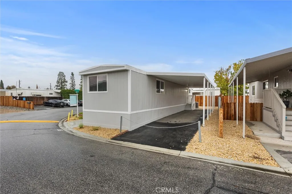 Welcome to this beautifully updated 2-bedroom, 1-bathroom manufactured home nestled on a prime corner lot in the tranquil Riverdale Village community. Step inside to discover a bright and modern interior featuring fresh paint, new carpet, wood-style flooring, and an efficient HVAC system. The kitchen shines with sleek countertops, stainless steel appliances, and contemporary cabinetry, while the bathroom boasts a stunning tiled shower for a touch of luxury. A private side patio offers the perfect space to relax or entertain with outdoor furniture. Beyond the home, enjoy a vibrant lifestyle with community amenities that include a sparkling pool, fitness center, game room, soccer and basketball courts, and a clubhouse with a full kitchen and recreation space. A playground and dog station complete this inviting setting. This turnkey home blends stylish living with a strong sense of communityyour serene retreat awaits.
