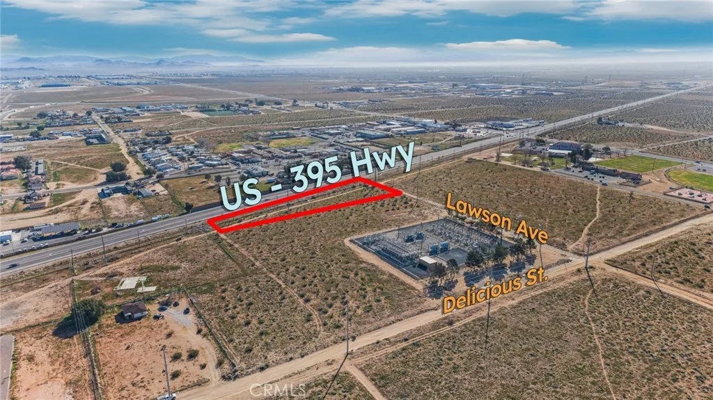 Prime vacant land opportunity in Adelanto, CA, offering excellent potential for commercial, mixed-use, multi-family, or investment development (buyer to verify all zoning, permitted uses, and entitlements). The property is highly visible with strong exposure to Highway 395 traffic and is located near the proposed Caltrans signalized intersection at Lawson Ave and Hwy 395 (buyer to verify status and timing). Adjacent to major utility infrastructure, including Southern California Edison, with water, power, and sewer nearby. Close proximity to the San Bernardino County Sheriffs Department (Adelanto Station), Adelanto Branch Library, Adelanto City Hall, and a public park, along with surrounding commercial activity, enhances accessibility and appeal. An excellent opportunity for developers or investors seeking visibility, infrastructure access, and growth potential. This parcel is ideally sold together with the adjacent parcel APN? 0459181630000 to maximize development potential, though each lot is available individually.