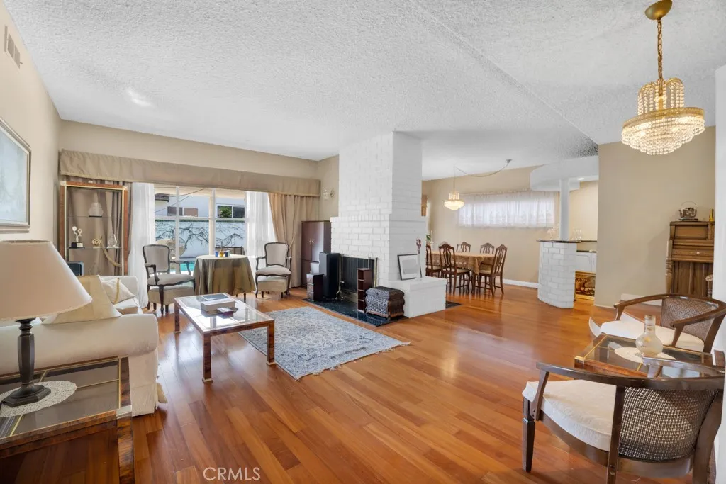 Welcome to this beautiful and spacious home located in North Hills, offering an inviting open floor plan and excellent indoor-outdoor living. As you enter, youre greeted by a bright living room with large windows that overlook the backyard, centered around a stunning double-sided fireplace that adds warmth and character to the space. To the right, the layout flows seamlessly into the dining area and wet barperfect for entertainingfollowed by the kitchen. The kitchen connects to the laundry room, which provides direct access to both the backyard and the garage. The garage has been permitted and converted into a family/living room, adding valuable living space while maintaining convenient access. All bedrooms are thoughtfully located on the left wing of the home. The first door off the hallway offers access to a full bathroom, conveniently shared from the hallway. The spacious primary suite is located further down the hall on the right and features a generous layout with his-and-hers closets leading into the private primary bathroom. Continuing down the hallway, youll find two additional bedroomsone on each sideideal for a family, guests, or home office use. Situated on a 7,497 sq ft lot, the backyard is a true entertainers dream, complete with a pool and ample space to relax, host gatherings, or enjoy sunny Southern California days.