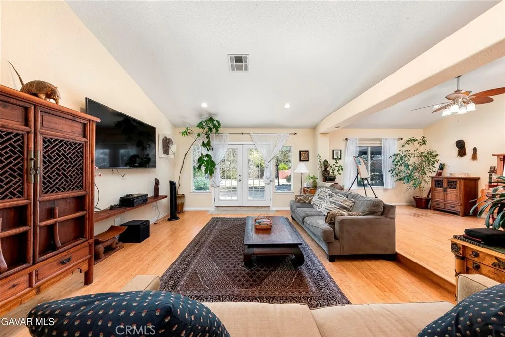 Nestled within the PRIME GATED COMMUNITY of California Chateau in West Palmdale, this beautifully upgraded home sits on an extra large lot exceeding 24,000 sq ft, offering plenty of space and privacy. Step inside to discover plantation shutters throughout, bamboo flooring, and a thoughtfully designed layout that flows beautifully for both everyday living and entertaining. The home offers a spacious living room, a formal dining area ideal for hosting, and a charming breakfast nook for casual meals. The kitchen is a standout, featuring quartz countertops, a built-in coffee bar, and ample workspace for cooking and gathering (chopping block not included in sale). Just beyond, the separate family room with a cozy fireplace is enhanced by French doors that open directly to the backyard, creating a seamless indoor-outdoor connection. The master suite is a true retreat, complete with a sitting area, a custom walk-in closet and a second closet for ample storage. The master bathroom boasts a custom vanity, a newly upgraded shower with gorgeous tile and a separate soaking tub. The second bathroom has been fully remodeled with a custom vanity and gorgeous new shower including new fixtures. A spacious laundry room with sink and built-in cabinetry adds everyday convenience. Step outside to an expansive covered patio spanning the entire length of the home, offering the perfect setting for entertaining, dining, and hosting memorable gatherings. The backyard is a gardener's dream, featuring mature fruit trees including apple, pomegranate, fig, Asian pear, pistachio, jojoba, sour cherry, and