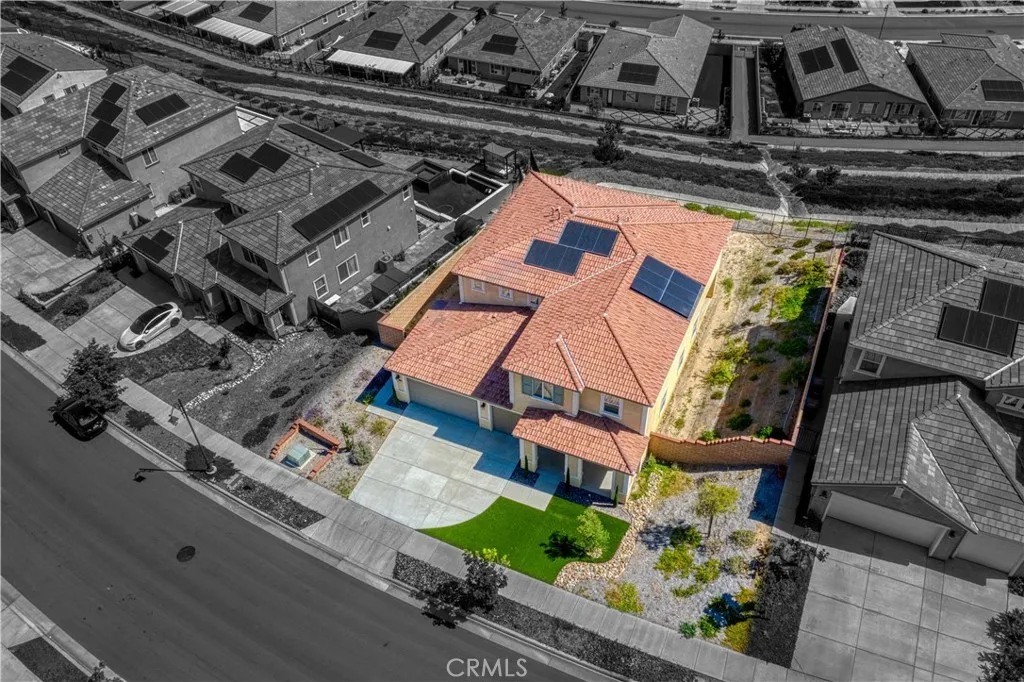 Welcome to your new haven in the prestigious Sierra Bella Community! This breathtaking residence overlooks the picturesque Inland Empire, offers the ultimate blend of luxury, comfort, and convenience. With five generous bedrooms (1 down, addl flex room down, 4 up) and three elegant bathrooms, this stunning 3,912 sq. ft. of thoughtfully designed for both relaxation and modern living. The owner's suite is a tranquil escape, featuring a cozy sitting area where you can unwind in peace. The gourmet kitchen is a chef's paradise, outfitted with stainless steel appliances and an expansive pantry to inspire your culinary adventures. A spacious, well-equipped laundry room adds ease to your daily routine, while a versatile flex room can serve as a home office, gym, playroom, or even a sixth bedroom, perfectly adapting to your lifestyle. The open-concept living area, drenched in natural light, creates an inviting space perfect for cherished family moments and lively entertaining, where laughter and warmth fill the air. Breathtaking mountain and city views grace every corner of the home, bringing the beauty of nature inside. Equipped with smart home technology, including smart appliances, a thermostat, USB outlets throughout, blending convenience with security. The three-car garage offers ample space for your vehicles topping it off with EV charging station. Energy efficiency is at the forefront, with a fully paid off solar system, promoting a sustainable lifestyle. With a lot size of 8,712 square feet, there's plenty of room to add a pool and spa. The backyard is a canvas for your imag