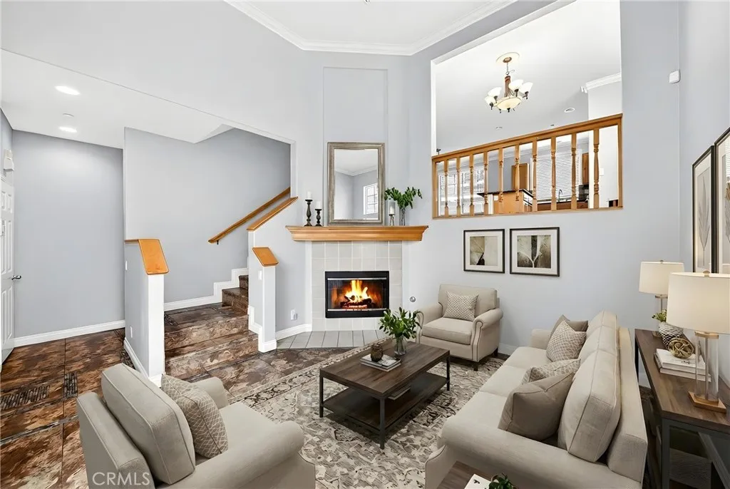 Welcome to 9 Coveside Ct, a beautifully maintained tri-level townhouse in the gated Lakeside Villas community. Prime location end unit with direction East- South super bright home, this spacious home offers 3 bedrooms and 2.5 bathrooms across approximately 1,513 square feet. The main level features a cozy living room with a fireplace and durable tile flooring, seamlessly connecting to an open family room and an eat-in kitchen. Upstairs offers three comfortable bedrooms and a convenient indoor laundry closet, with easy-to-maintain tile & laminate wood flooring throughout. The attached two-car garage provides ample parking and storage, while central air conditioning and heating ensure year-round comfort. Enjoy resort-style living with access to community amenities including an 8-acre lake with paddle boats, junior Olympic pool, spa, clubhouse, playground, basketball court, and scenic walking paths. Located close to shopping, dining, Metrolink station, golf courses, and major freeways, this home perfectly balances comfort, convenience, and lifestyle. HOA cover all exterior including insurance, roof, and trash.