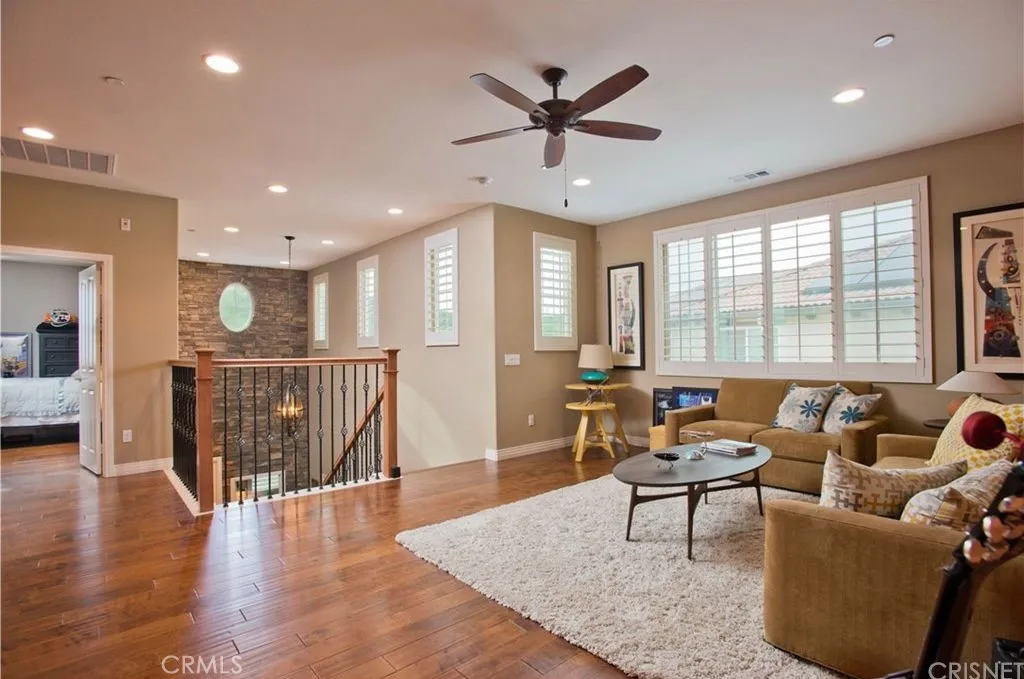 The most magnificent view home in all of Valencia's West Hills neighborhood. This 4-bedroom, 3-bathroom home has a large loft with room for an office, family room, master bedroom with walk-in closet, impressive entry with a 20-foot ceiling, a HUGE covered patio, and an amazing back yard that is perfect for outdoor living. This home has been beautifully upgraded. Upgrades include gorgeous designer tile on the ground floor, stack stone entryway, upgraded wood flooring on the top floor, energy-efficient ceiling fans, window coverings, high-end light fixtures throughout, gorgeous views. Leased Solar panels for money and energy savings. The backyard is perfect for catching Valencias 4th of July fireworks, mature landscaping. This home is a short walk to the prestigious West Creek Academy in a gated community with paseos, 3 swimming pools, and a new playground.