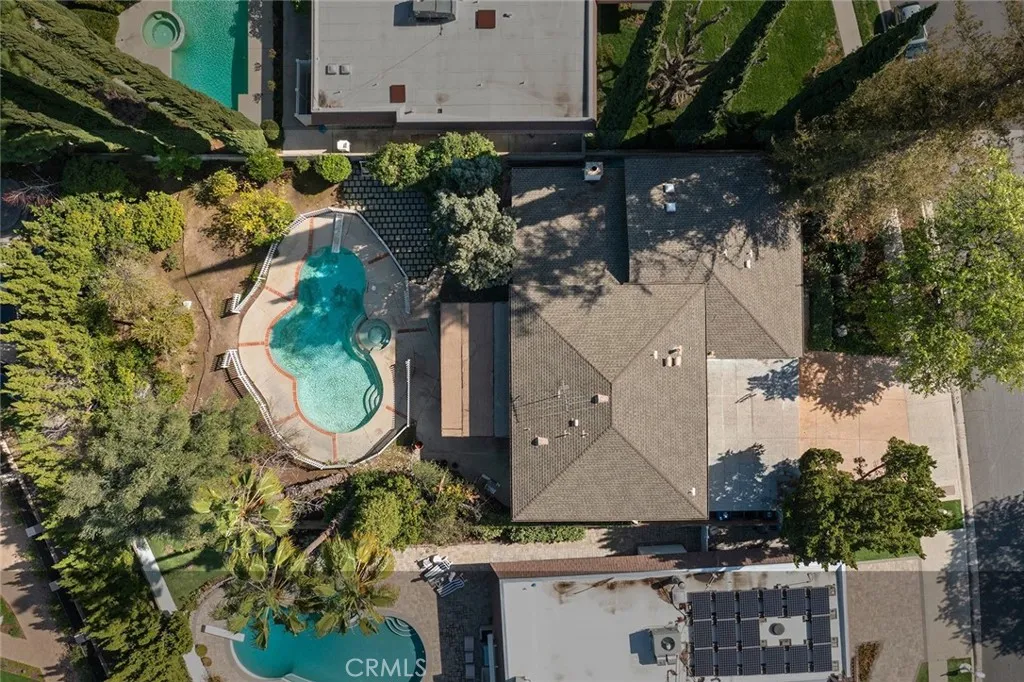 Incredible opportunity to purchase a Mid-Century timepiece offered on the market for the first time in almost 50 years. Located on a quiet cul-de-sac West of Valley Circle, the sprawling property sits on an impressive 11,000+ SF completely flat lot, with one of the largest usable backyards in the neighborhood. Wide frontage is adorned with mature trees, lush landscaping, and driveway that leads to a 3-car attached garage. A tiled covered front porch with original double front doors opens to a grand entry foyer with original terrazzo tiled flooring, coat closet, and guest powder bathroom. The formal living room boasts gorgeous vaulted wood beamed tongue and groove ceilings, brick fireplace, and two sets of Pella glass sliders that open to the backyard. The formal dining room has direct kitchen access and another glass slider that opens to the covered patio. Separate family room has wood product walls, built-in bookshelves, and a stellar walk-in wood paneled wet bar with sink, wine storage, and custom built-ins. The spacious kitchen overlooks the yard and features island, peninsula, custom cabinetry, Sub Zero fridge/freezer, Thermador stovetop, double ovens, pantry space, and separate breakfast room with another slider that opens to the yard. The oversized primary suite is located on the first floor featuring large walk-in closet, original built-in desk with wardrobe closets, and private en-suite bathroom with dual sinks, walk-in shower, and separate roman soaking tub. Upstairs you will three additional well appointed bedrooms plus bonus loft that overlooks the living room wi