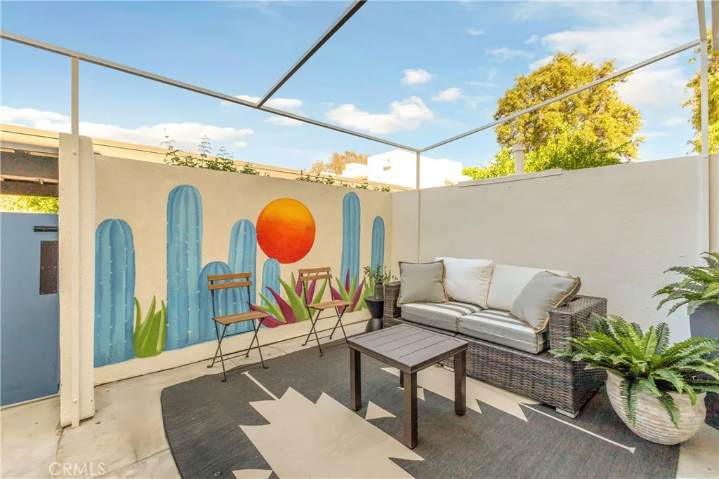 Discover the charm of Palm Desert in this beautifully renovated townhome, ideally located just minutes from the renowned shops and restaurants of El Paseo. Tucked behind a private gate, a welcoming front porch and sun deck set the tone for relaxed desert livingperfect for morning coffee or unwinding in the warm evening air. Inside, the thoughtfully redesigned interior blends style and functionality. The newly renovated galley kitchen features quartz countertops, a gas range, dishwasher, and refrigerator, creating a clean and modern workspace. The open-concept living and dining floorplan flows effortlessly to a private back patio framed by lush greenbelts, offering a peaceful outdoor retreat. Brand-new luxury vinyl flooring runs throughout the main level, complemented by a custom wood-paneled accent wall that adds warmth and character. The fully remodeled powder bath showcases a white oak vanity, quartz countertops, and elevated brushed brass lighting and fixtures for a refined designer touch. Upstairs, two generously sized bedrooms offer comfort and privacy, complete with new carpet and plantation shutters. Both bathrooms have been tastefully updated with white oak cabinetry, quartz countertops, and matte black fixtures, blending timeless finishes with contemporary style. Located within the 120-home Mountainback community, this property includes two assigned covered carportsan uncommon and valuable feature in the area. Residents enjoy access to resort-style amenities including pools, spa, tennis, and pickleball courts, all with low HOA fees. Just moments from El Paseos prem