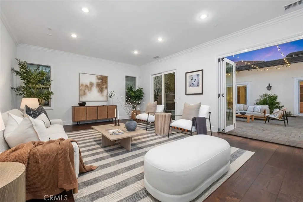 TWO HOMES on ONE lot! The fully detached SINGLE LEVEL guest house with TWO en-suite bedrooms connected by a central family room, offers exceptional privacy and versatility. No Mello Roos Tax! Exclusive 24h guard gated community. 77 Clifford is a luxurious award winning estate The Grove Plan 2. Designed with intentional spaces for grandparents, parents, and children alike. Private retreats and generous gathering areas create harmony for every generation where family legacy and modern comfort coexist beautifully. Embracing a Japandi aesthetic of organic natural materials earthy wood and stone, the design balances simplicity, minimalism, and functionality; creating a calming, harmonious feel. Natural light flows through numerous windows, creating a bright, airy atmosphere throughout. The high-ceiling stairway leads to a versatile loft space. The bedrooms are all en-suite, are uniquely spacious, and designed with privacy in mind. The luxurious primary suite features an enlarged dream walk-in closet with checkered flooring, that attaches directly to the private office. A freshly renovated spa-inspired bathroom, dual vanities, and an additional walk-in closet completes the space. The great room flows seamlessly into a host's dream kitchen, outfitted with PRO Sub-Zero and Wolf built-in appliances. The versatile butlers pantry is perfect as a coffee station, secondary prep area, or discreet serving space when entertaining. This extension of the kitchen enhances both functionality and flow for elevated everyday living. The main home and guest house are lined with vast windows and to