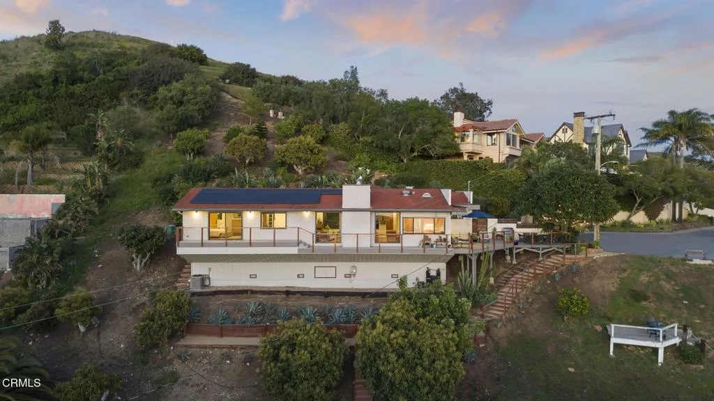 Welcome to 496 Lupine Way in McElrea Heights -- a special Ventura hillside home where the views truly steal the show. Perched high above the city at the end of a quiet cul-de-sac, this beautifully renovated single-story retreat takes full advantage of its incredible setting, offering sweeping panoramic views of the Pacific Ocean, Channel Islands, and the twinkling city lights below. From the moment you step inside, the scenery becomes part of everyday living. Expansive windows throughout the home frame the coastline like artwork, filling the space with natural light and creating a seamless connection between indoors and out. Whether it's watching the morning marine layer roll away or enjoying colorful sunsets in the evening, the views are simply unforgettable. The interior has been thoughtfully updated with Canadian white oak hardwood flooring, an open and comfortable layout, and stylishly remodeled kitchen and baths. The kitchen features custom cabinetry, high-end appliances, and a clean, modern feel that's both functional and inviting. One of the true highlights of the home is the expansive view deck -- it feels like your own private observation point above the coast. Perfect for relaxing, entertaining, or simply taking in the ocean breeze, the deck includes built-in speakers powered by a Bluetooth-enabled Sonos amp, making it an ideal setting for everything from quiet mornings to sunset gatherings. The home also offers numerous system and exterior upgrades, including solar panels, a Tesla universal wall connector, newer HVAC with updated ducting, and a whole-house attic
