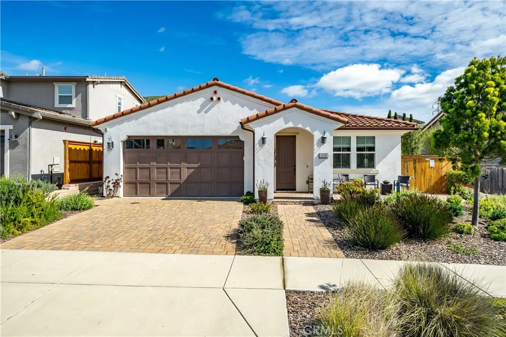 Welcome to 3229 Violet Street in the desirable Serra Meadows neighborhood of San Luis Obispo. This upgraded single-level home blends modern efficiency with elevated Central Coast living. Wide plank hardwood floors and abundant natural light highlight the open-concept layout, seamlessly connecting the living, dining, and kitchen areas. A gas fireplace anchors the living room, while automatic window shutters provide convenient privacy and light control throughout. The kitchen features stainless steel gas appliances, a walk-in pantry, and sliding glass doors that open to the fully landscaped backyardperfect for indoor-outdoor living. The spacious primary suite offers backyard views and a well-appointed en-suite bath with soaking tub, walk-in shower, dual vanities, and a walk-in closet. Two additional bedrooms and a full bath add flexibility. Outdoor living shines with a fully equipped outdoor kitchen, expansive paver patio with trellis, and an enhanced upper patio deck capturing views toward Edna Valley. Owned solar, Air Conditioning, and whole-house LifeSource filtration system add comfort and efficiency. Minutes to hiking trails, Downtown San Luis Obispo, the SLO Public Market, and SLO Regional Airport, this home delivers the rare combination of modern upgrades, view-oriented outdoor living, and an unbeatable location. Homes with this level of efficiency and upgrades in Serra Meadows dont last long experience it before its gone.
