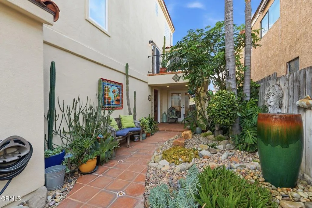 Just eight houses from the sand, this meticulously maintained Spanish-style home delivers the full beach lifestyle without compromise. From the hand-carved solid wood entry door and Talavera tile accents to the travertine floors and wrought iron staircase, the craftsmanship throughout is a cut above; every surface thoughtfully finished, nothing overlooked.The open main level flows easily from a generous living room anchored by a travertine fireplace to a warm dining area and a chef's kitchen with rich custom cabinetry, granite countertops, stainless appliances, and a peninsula counter that invites casual dining and conversation. Wood shutters, and a tropical ceiling fan give the space a relaxed, coastal character that feels both polished and lived-in.The primary suite is a true retreat; spacious and quiet, with a jetted soaking tub, walk-in tiled shower, and custom vanity. Two additional bedrooms and a versatile lower-level bonus room with a fireplace and wet bar round out the 2,177 sq ft of living space across three floors.The crown of the home is the private rooftop deck - open sky, ocean horizon, and the Channel Islands floating on the water. Sunsets here are something else entirely.With a 2-car garage, front patio courtyard, and beach access steps away, this is the rare property that checks every box - built with care, kept with pride, and ready for its next chapter.