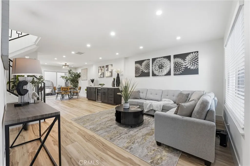 Step into a high-end, open-concept sanctuary designed specifically for the modern Costa Mesa lifestyle. This stylish three-bedroom townhome offers a rare opportunity to own a residence reimagined by a notable designer featured on popular HGTV design shows, blending elite aesthetics with the mechanical integrity of a much newer home. This property represents a huge value in the current market for a fully remodeled three-bedroom residence. The interior makes a bold statement with stunning new wide-plank flooring in modern tones, designer lighting fixtures throughout, and a sleek, custom steel staircase railing that serves as the homes architectural centerpiece. The chefs kitchen is a true showstopper, featuring charcoal cabinetry, designer fixtures, quartz counters, and a striking hexagon tile backsplash that runs to the ceiling. It comes fully equipped with a gas range, a farmhouse sink, and a custom design wall featuring a wine fridge and integrated shelving. Beyond the designer finishes, this home offers unparalleled peace of mind through extensive recent infrastructure upgrades. Featuring a newer AC (2019) and a comprehensive heating and air quality overhaul in 2022, including 100% brand-new ductwork and the installation of a hospital-grade filtration (MERV 13) and air scrubber UV system to ensure elite air quality, parts are covered under warranty until 2032. The plumbing has been equally fortified; in 2025, a main sewer line replacement was completed using modern pipe-bursting technology, carrying a 12-year warranty. Additionally, all upstairs piping has been replaced,