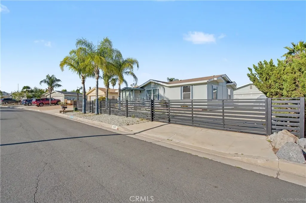 Welcome Home! This manufactured home is in a 55+ community that is well-kept. However, there is no HOA fee associated with this property. The home is established on a permanent foundation, as are the surrounding homes. This home sits on a large lot and is protected by a new electronic gate. The front yard is filled in with rocks, removing the need for any landscaping work! Several palm trees guide you up the steps to the front door. Inside, you will find a spacious open floor plan on 1 story. The inside is well-maintained and demonstrates a clear pride of ownership. The home has 3 bedrooms and 2 bathrooms. In the backyard is an ADU that is in good condition. The square footage listed does not include the ADU. The plans for the ADU will be included in the sale.