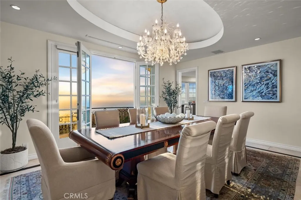 Behind private gates and past a tranquil fountain, this home is a totally custom Palos Verdes Estates showpiece defined by huge, unobstructed viewssweeping the ocean, the LA Basin, and Malibu in one dramatic, west-facing panorama. A grand arrival sets the tone, leading into an elegant interior with gorgeous stone floors, soaring ceilings, rich moldings and beautifully finished details throughout. Walls of windows line the west side of the home, capturing the coastline and city lights from morning through sunset. Designed for both formal entertaining and easy everyday living, the main level features a formal living room anchored by a fireplace, plus a refined dining room beneath a sparkling chandelier. French doors open to a view patioperfect for cocktails at golden hour. The kitchen is equally impressive, offering an eat-in breakfast area, center island, new appliances and seamless flow into the casual family room with its own fireplace and a bar area. A grand staircase with scrolling railings descends to the primary suite level, creating a true retreat. Enter through double doors to a private seating room, charming French doors that open to the patio, warm wood floors, built-in cabinetry and a cozy fireplace. The spa-like bath includes two separate vanities, a large soaking tub, an oversized separate shower and generous his-and-hers closets. Two additional en-suite bedrooms on this level enjoy stunning view outlooks, while a large laundry room offers abundant custom cabinetry and storage. On the lowest level, a flexible, stand-alone living area is perfect for guests, in-la